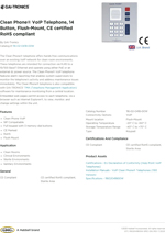Clean Phone® telefon, temiz oda ortamları için mevcut bir VoIP ağı üzerinden eller serbest haberleşme imkânı sunar. Bu telefonlar, RJ45 üzerinden 10/100 BaseT Ethernet hattına bağlanacak şekilde tasarlanmıştır ve PoE (Power over Ethernet) veya harici bir DC güç kaynağı ile çalışabilir.